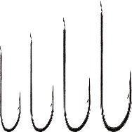 Nichel-plated hooks with diverging tip, without barb, medium-gauge wire for fishing medium-sized fishes. Chemical sharpening