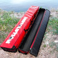 Ha l’interno foderato provvisto di fasce con velcro e moschettoni, due scomparti a rete, le maniglie in gomma e la cinghia regolabile ed asportabile. Realizzato per un comodo e sicuro stivaggio delle canne fisse di ridotta dimensione.