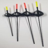 Galleggiante con antenna in plastica piena verniciata di grosso diametro, deriva in fibra di vetro e filo passante laterale. Molto robusto ideale per la pesca di grossi pesci in canale o fiume o in carpodromo.